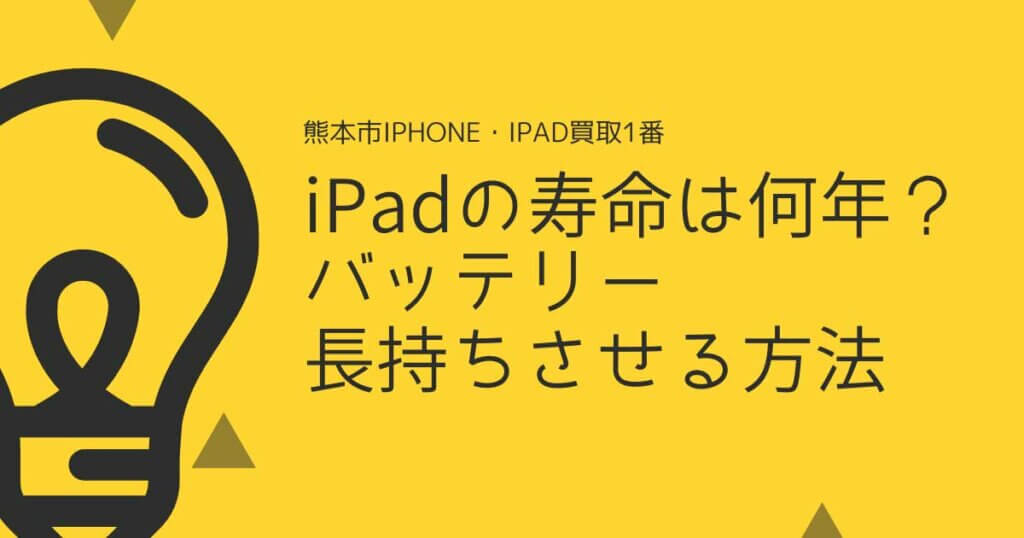 熊本市iPhone・iPad買取1番です。 長く愛用しているiPad。 「いつまで使えるの?」と心配になったことはありませんか? 急に故障して大事なときに使えなくなったら困りますよね。 iPadの寿命や、バッテリーなど長持ちさせる方法について知り、快適なiPadラ... -